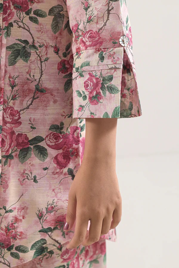 Crafted from premium printed cotton khaddar, the shirt is cut from a wider-width 1.75m fabric that enhances both comfort and stitching flexibility. The soothing base shade is adorned with lush, soft rose florals in tones of pink, mauve, plum, and dusty greys—giving the outfit a romantic, garden-inspired look. The print feels refreshing yet classic, beautifully complementing winter aesthetics while maintaining a timeless appeal.