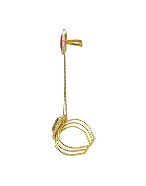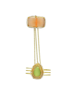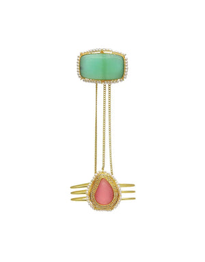 For going above and beyond in life's momentuous occasions, our statement hand harness is bejewelled in natural stones for a dash of radiance. Plated in 18K gold, count on this piece to make a unforgettable impression wherever you go.