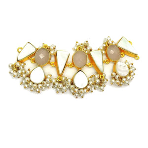 Fierce and fiery is what best describes this Tessa Choker. The dainty combination of the monalisa and mother of pearl stones make this necklace versatile for any season.