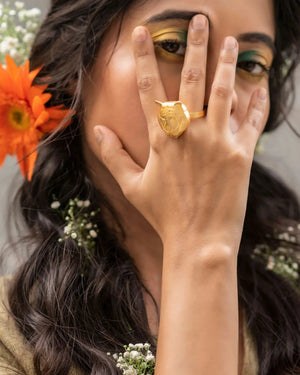 Tiger-inspired statement ring made from brass dipped in gold. Made to match with the Tigris Earrings.