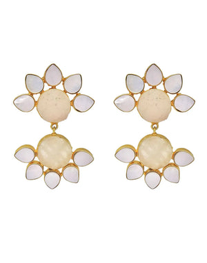 Make a mark with these gold-plated statement earrings delicately crafted in natural stones and mother of pearl. Pair them with your favorite jeans or that little black dress – these earrings elevate every outfit.