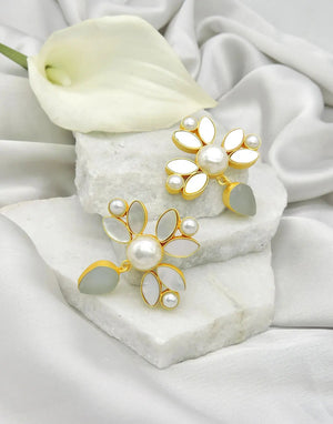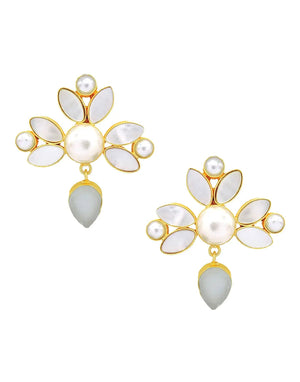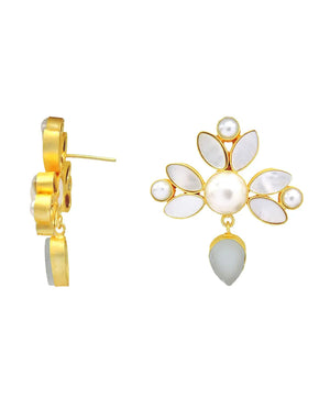 Elevate your jewelry collection with our elegantly handcrafted earrings. Featuring a robust brass base plated in gleaming 18K gold, these earrings are adorned with a sophisticated blend of natural shell, lustrous pearls, and striking rough gemstones. Each pair combines timeless elegance with contemporary edge, offering a versatile accessory for any occasion.