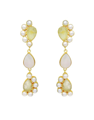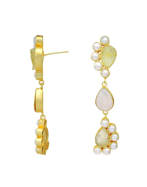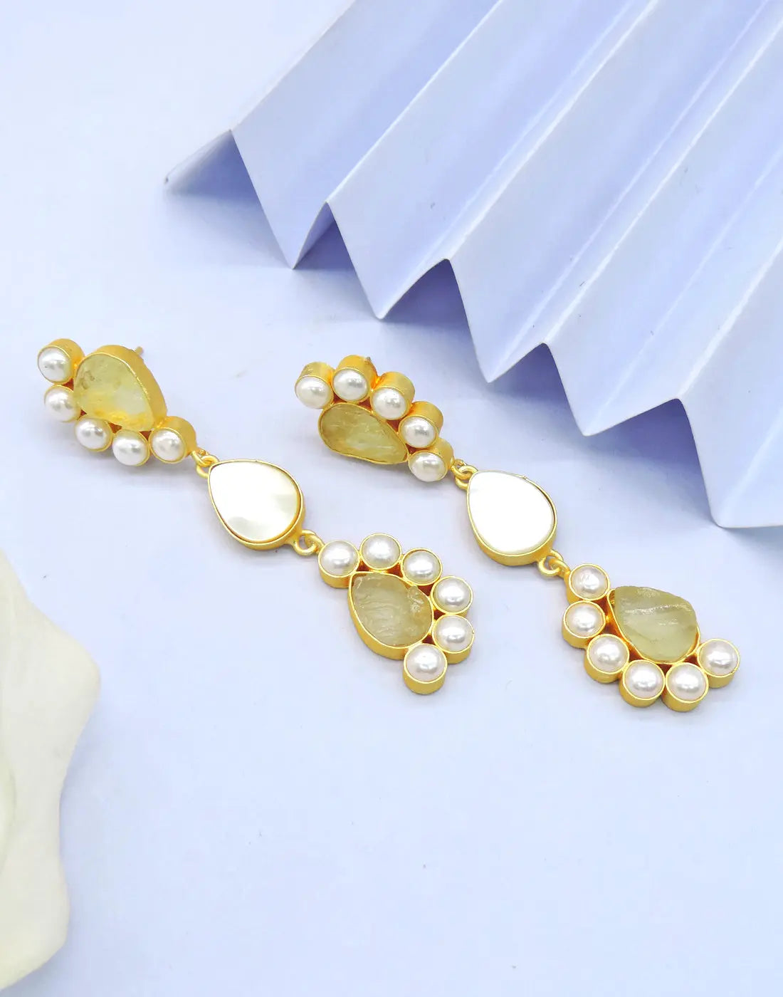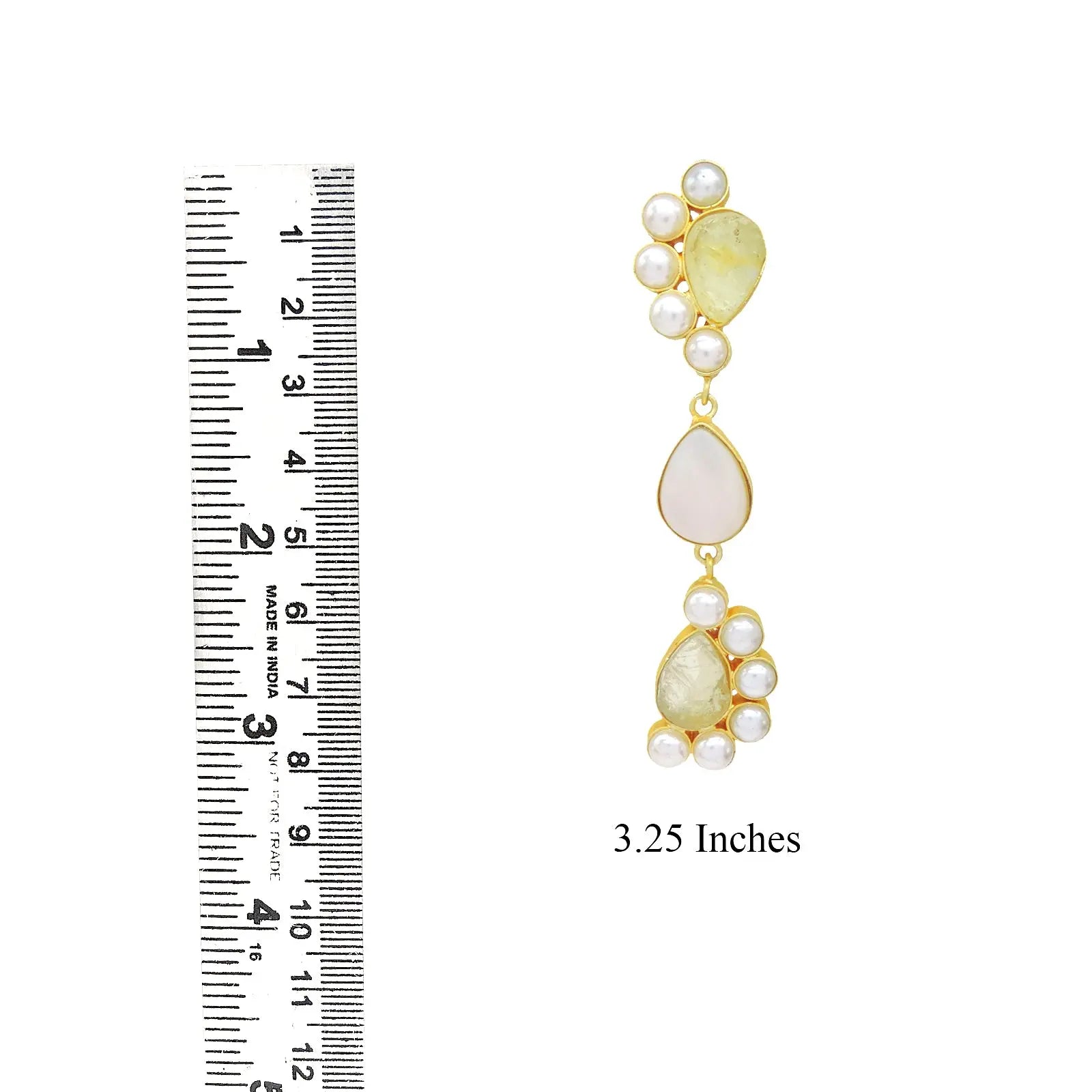 Enhance your jewelry collection with these elegantly handcrafted earrings. Featuring a durable brass base plated in opulent 18K gold, these earrings combine timeless sophistication with a touch of modern edge. Adorned with lustrous pearls and striking rough gemstones, they create a perfect balance of classic beauty and contemporary style.