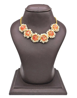 More than just an accessory, this statement necklace is perfect for enveloping yourself in timeless radiance wherever you go. Crafted in 18K gold plated metals and embellished with natural stones, this exquisite piece is a versatile companion that adapts to any occasion and wardrobe.