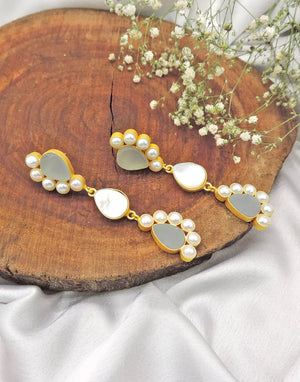 Enhance your style with our beautifully handcrafted earrings, where classic elegance meets contemporary design. Featuring a solid brass base plated in luxurious 18K gold, these earrings showcase a stunning combination of lustrous pearls and bold rough gemstones. Each pair is meticulously crafted to offer a harmonious blend of sophistication and modern allure.